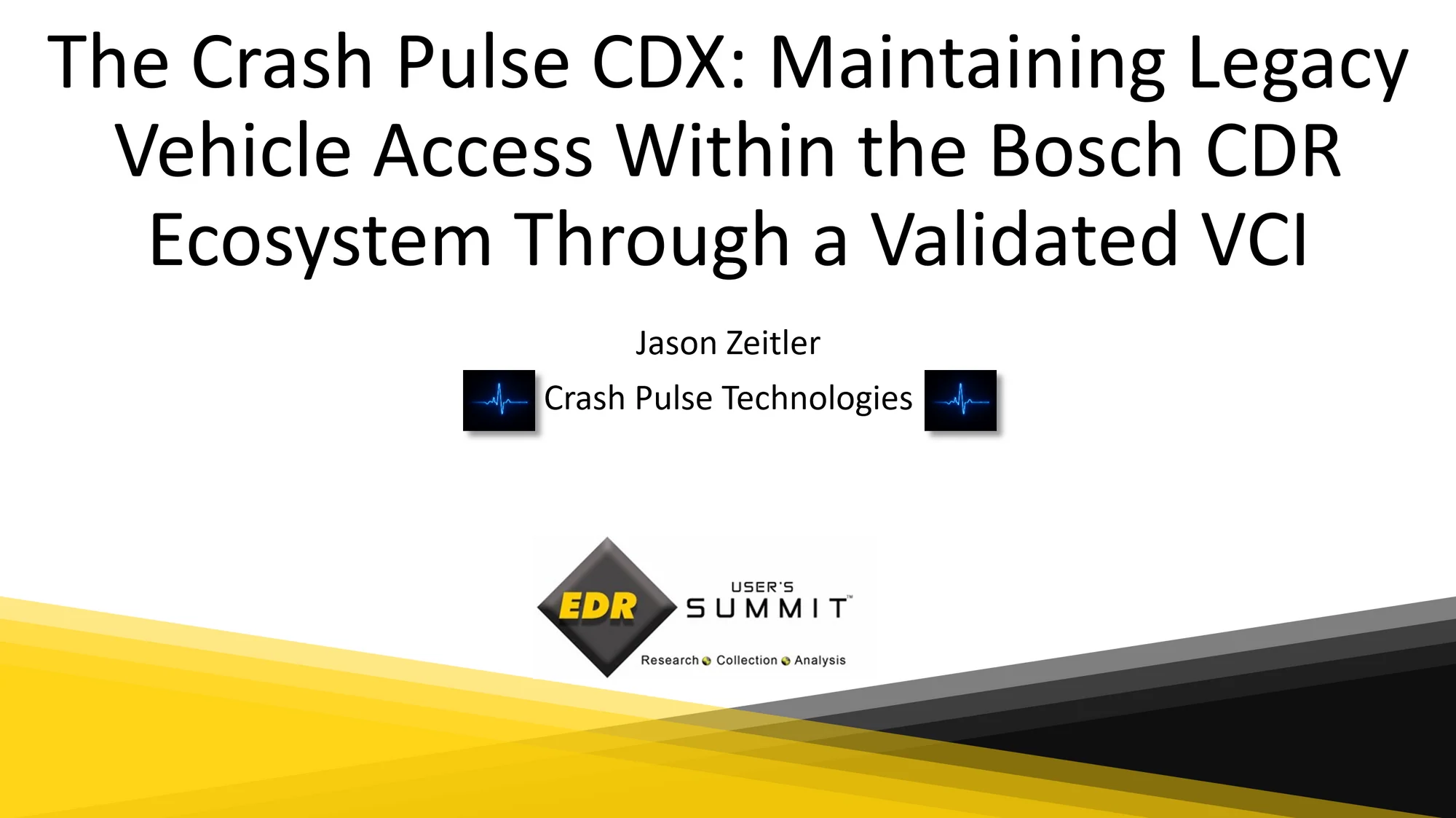 The Crash Pulse CDX was presented at the 2026 EDR Summit, in Houston, on the development and validation of the CDX, an SAE-published, functionally equivalent solution to the discontinued CANplus.